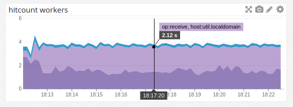 Since each worker performs one second per second of work, the graph total gives you the number of active workers (and indeed, I generated this example with four workers). We’re losing a bit of time (potentially in the statsd.increment calls themselves?), but we’re pretty close.